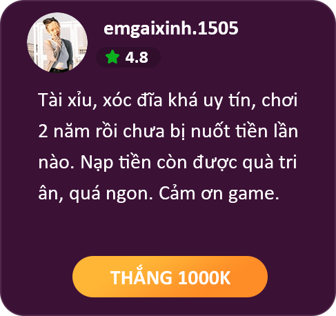 Game có các phương thức nạp tiền phổ biến và đơn giản nhất, với tỷ lệ nạp tiền thành công trên 98%.Mỗi giao dịch rút tiền có thể lên tới 45M và không có giới hạn trên đối với số lần rút tích lũy, có thể nhận được nhanh chóng trong vòng 3 phút.